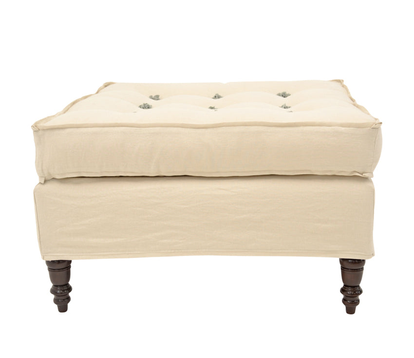 The lady of the line. Incredibly chic as a settee or statement piece in any room. Tufting secured by your choice of rosettes or buttons.